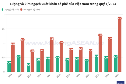 Cà phê mang về kim ngạch kỷ lục trong quý 1/2024