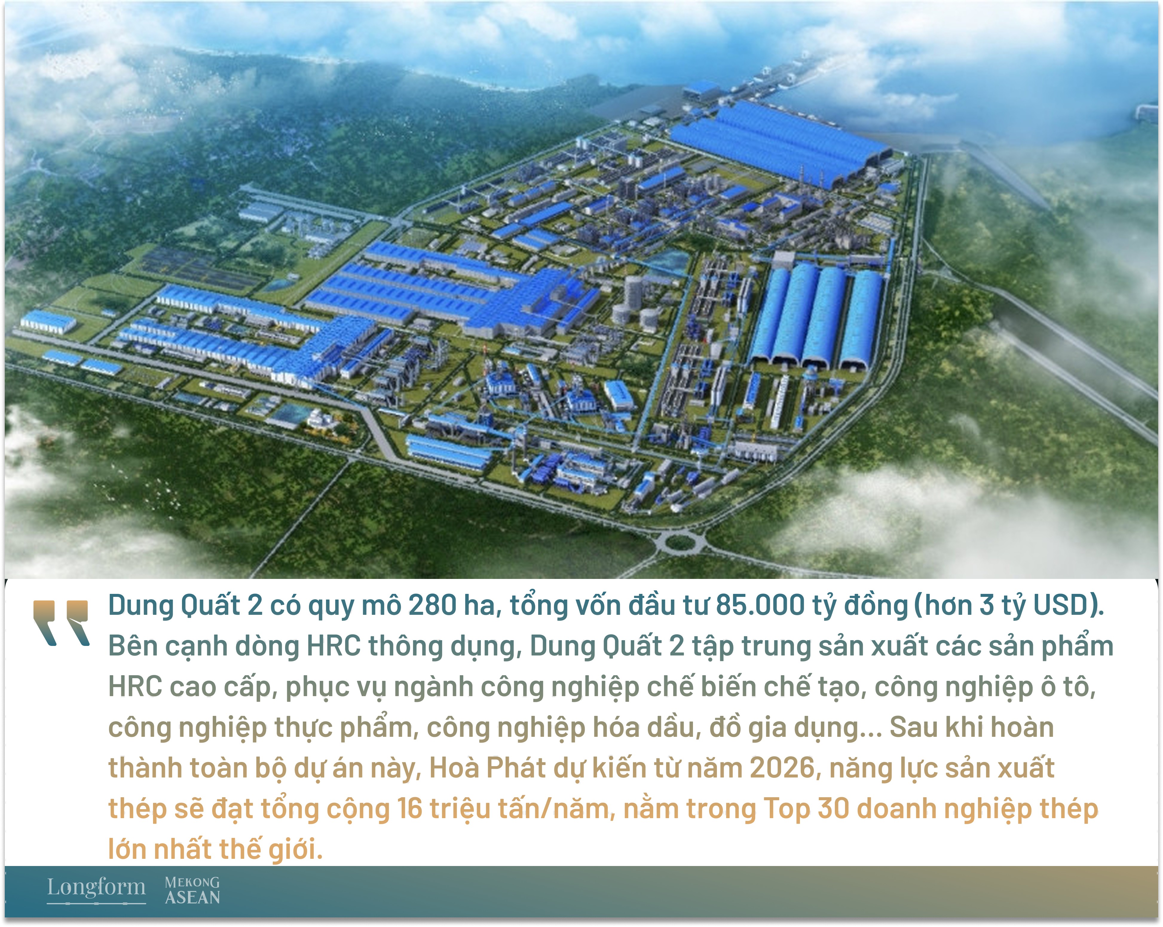 Siêu dự án được mệnh danh là “cú đấm thép” thứ 3 của Hoà Phát (sau Dung Quất 1 và Dung Quất 2) dự kiến sẽ triển khai ngay cuối năm 2025, trong đó khu liên hợp gang thép được chia làm 2 giai đoạn với tổng công suất 6 triệu tấn/năm. Khi hoàn thành dự án, năng lực sản xuất thép của Hòa Phát sẽ nâng lên mức 22 triệu tấn/năm.