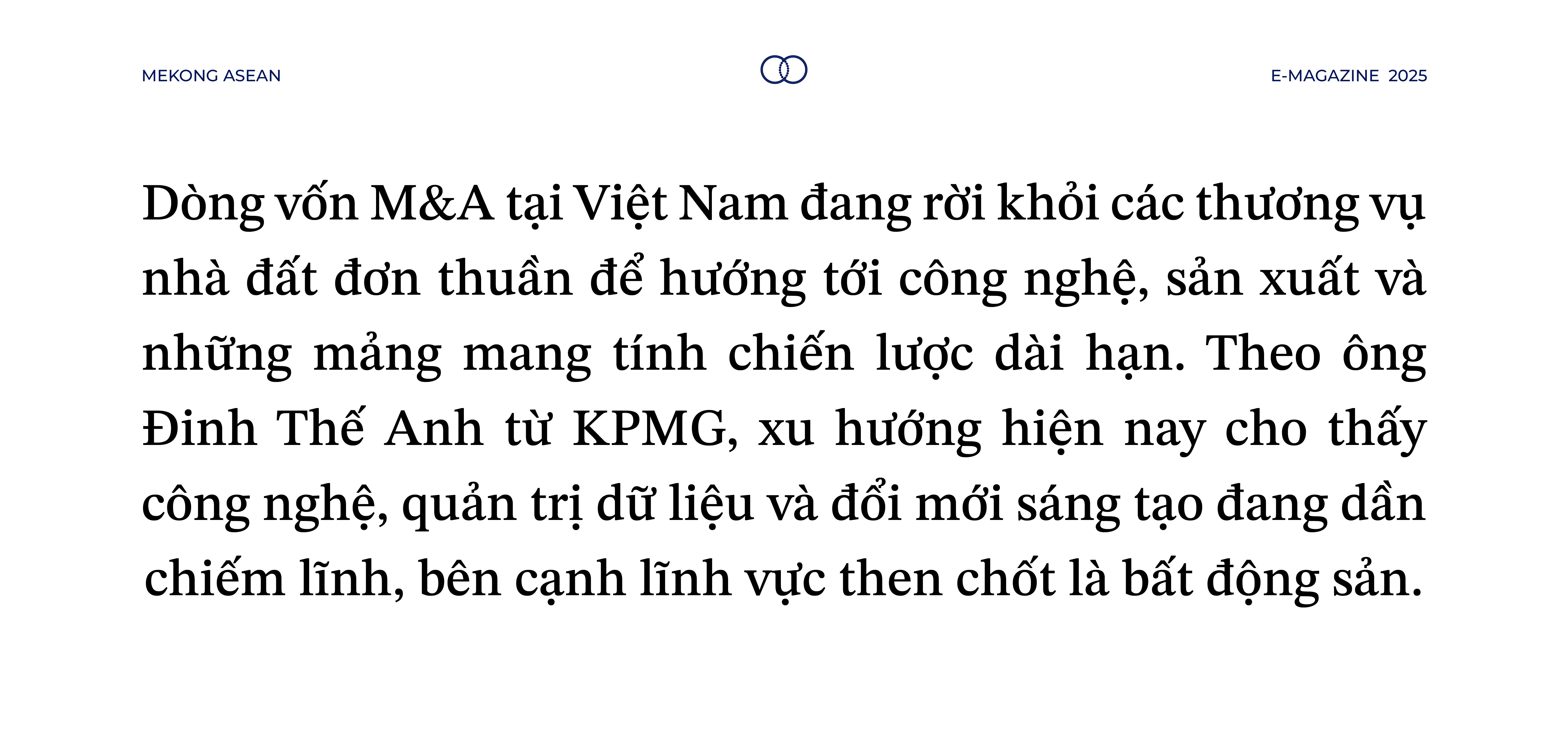 Ông Đinh Thế Anh cũng cho rằng công nghệ sẽ là tâm điểm được quan tâm trong nửa cuối năm 2025. Nếu trước đây, các thương vụ M&A chủ yếu hướng đến bổ sung vốn cho hoạt động sản xuất – 55win.com - Trang Cược Uy Tín Cao Nhất 2025, thì nay, nhu cầu đã dịch chuyển sang việc tìm kiếm hệ sinh thái công nghệ toàn diện. Điều này phản ánh một xu thế mang tính chiến lược: vốn không còn là yếu tố duy nhất quyết định sự phát triển bền vững, mà năng lực công nghệ, khả năng quản trị dữ liệu và tốc độ đổi mới sáng tạo mới là những đòn bẩy then chốt.