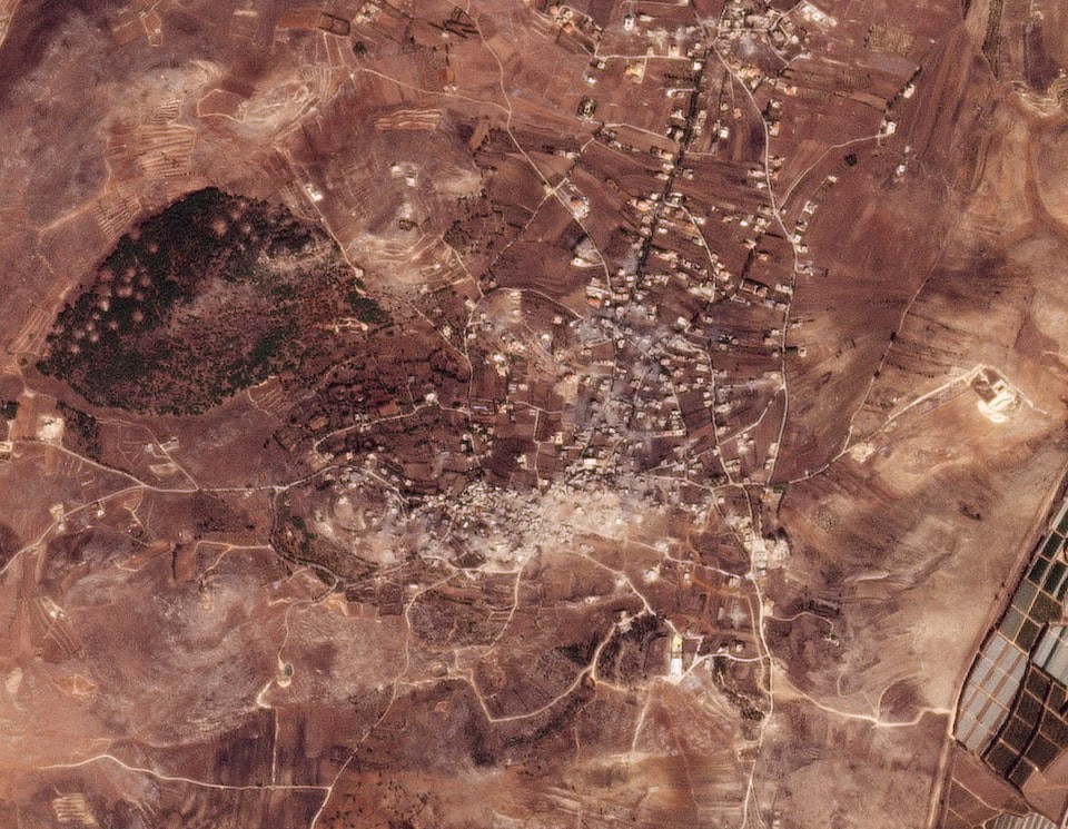 Hình ảnh khói bốc lên tại khu vực phía Nam Lebanon ngày 28/10/2024. Ảnh: Planet Labs. |