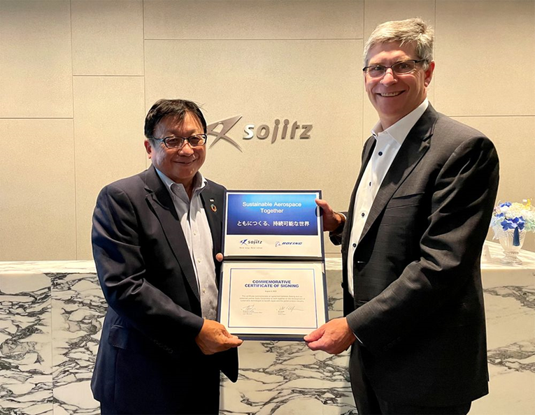 Từ năm 1956 đến nay, Sojitz đã hợp tác chặt chẽ với Boeing với vai trò là đại lý bán máy bay Boeing tại Nhật Bản. Là nhà sản xuất thiết bị hàng không vũ trụ lớn nhất thế giới, Boeing cũng đang dẫn đầu các nỗ lực của ngành hàng không hướng tới việc khử cacbon, đồng thời phát triển các công nghệ và giải pháp mới cho tính linh hoạt của thế hệ tiếp theo.